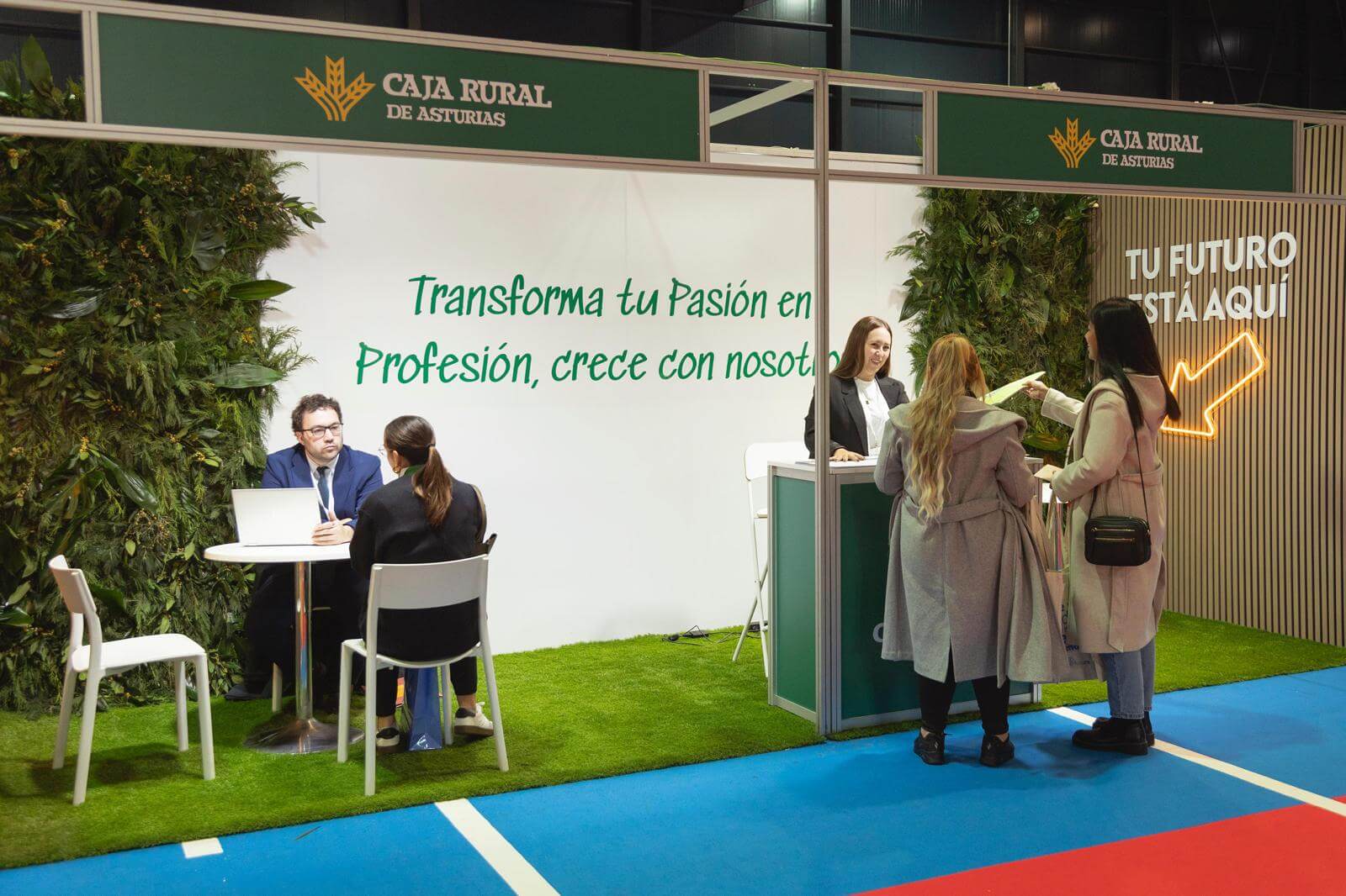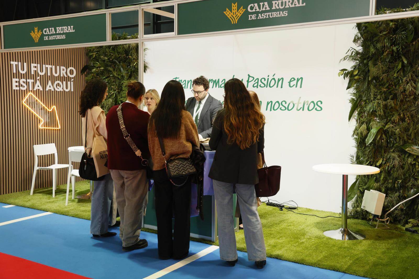 El pabellón central del Recinto Luis Adaro de Gijón acogió a más de un centenar de empresas, un incremento del 25 % respecto al año anterior, en un evento que supone una oportunidad para que las empresas conozcan al talento asturiano y para que los estudiantes y egresados se acerquen al mercado laboral de la región.