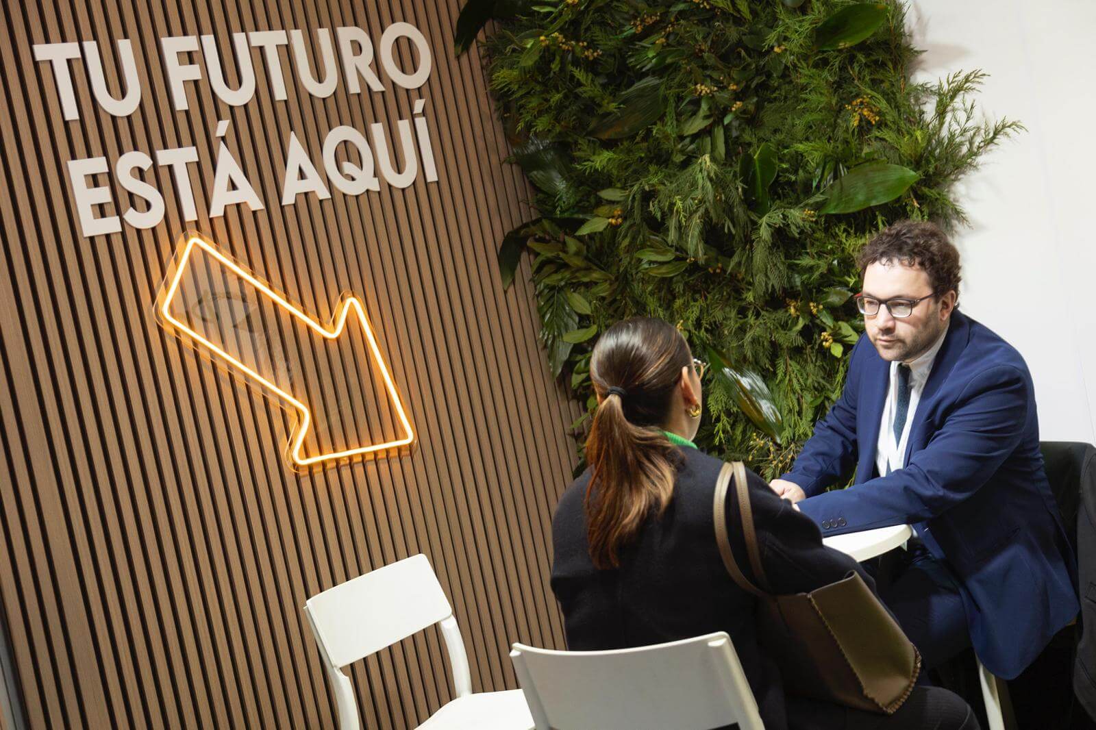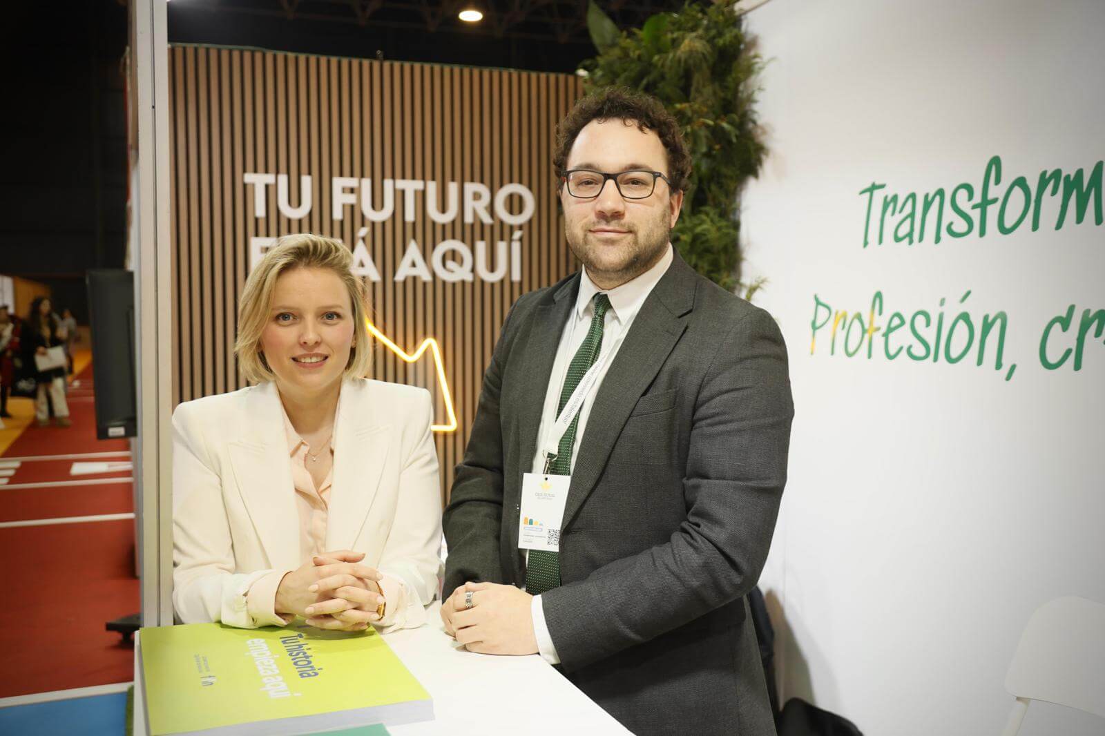 Marta Codrean y José Antonio Blanco, del departamento de Gestión de Personas, recibieron en el stand de Caja Rural de Asturias a todas aquellas personas interesadas en conocer nuestra entidad, las oportunidades profesionales disponibles y las becas FUO.
