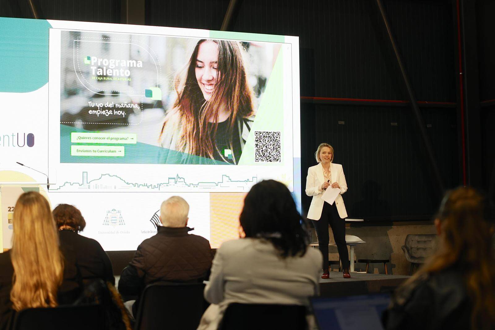 El Foro de Empleo de la Universidad de Oviedo se completó con un extenso programa de presentaciones, charlas y actividades orientadas a mejorar las habilidades a la hora de encontrar un empleo. Marta Codrean participó en el turno de presentaciones corporativas con la charla titulada “Tu futuro profesional comienza aquí”.