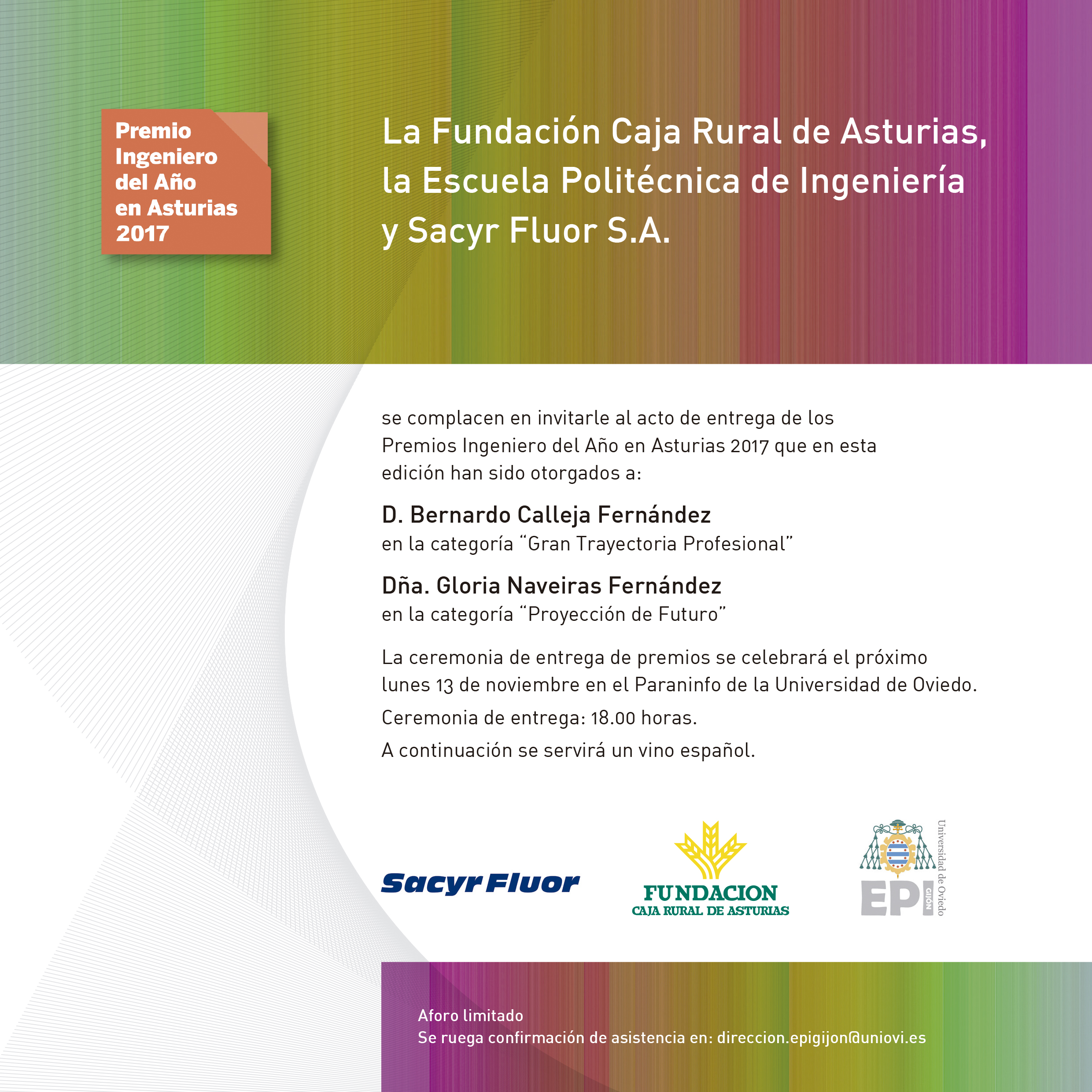 El acto de entrega tendrá lugar el lunes 13 de noviembre, a las 18:00 h. y mediante invitación, en el Paraninfo de la Universidad de Oviedo.