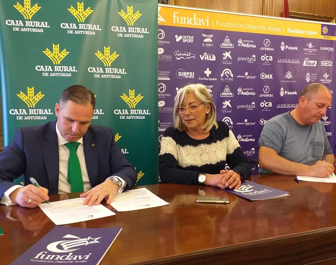 La Fundación Deporte Avilés y la Caja Rural de Asturias han firmado un convenio de colaboración mediante el cual la entidad bancaria se convierte en nuevo benefactor de Fundavi. El acto ha tenido lugar en el salón de recepciones del Ayuntamiento de Avilés y, con la presencia de la concejala de deportes Ana María Hevia, han rubricado el acuerdo el presidente de Fundavi, Aladino Pandiella, y el director de zona de Avilés de Caja Rural de Asturias, José Manuel Vega.