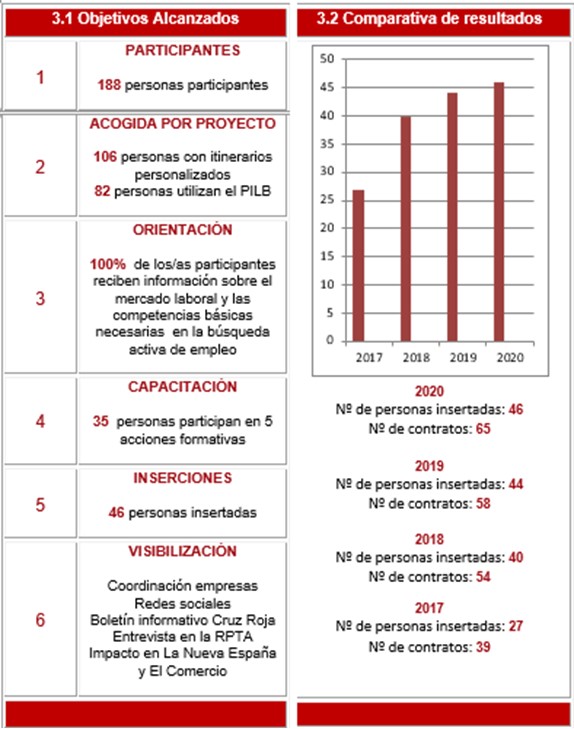 Por su parte, el proyecto de Itinerarios integrales se ha convertido en un referente en sus dos localidades de intervención que son Langreo y Pola de Siero. En esta fase de postpandemia, en la que mucha gente ha perdido el empleo, se hace más necesario contar con un recurso como este para poder orientar a las personas en situación de vulnerabilidad hacia su reinserción en el mercado laboral.