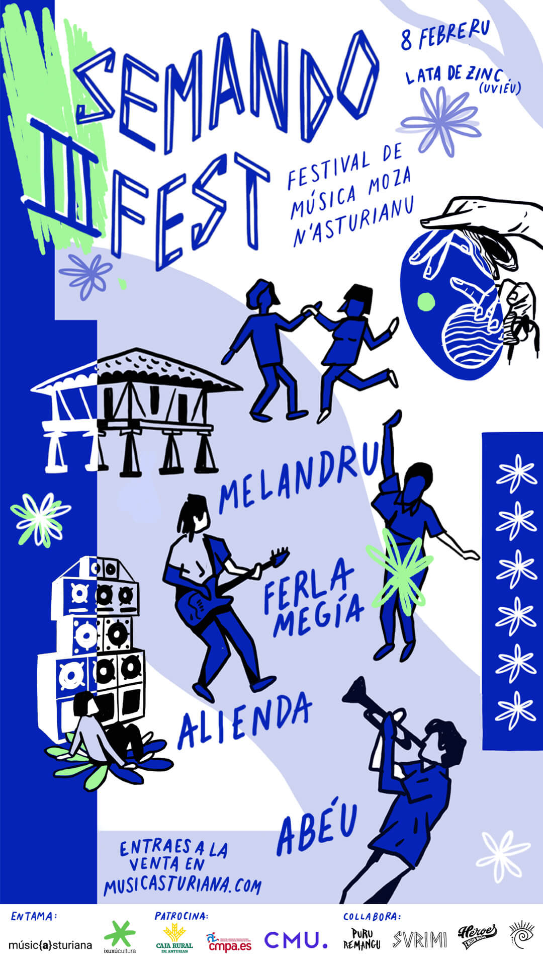 El III Festival de Música Joven en asturiano Semando Fest se celebrará en Oviedo, con las actuaciones de los grupos Abéu, Ferla Megía, Alienda y Melandru, el 8 de febrero a las 21.00 horas en la sala «Lata de Zinc».