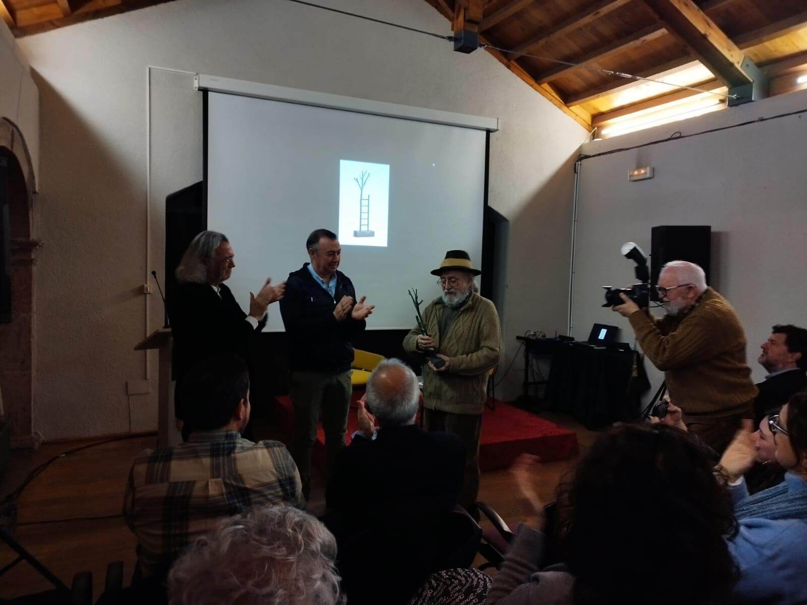 El acto se completó con una charla del homenajeado con el periodista Antonio Martínez Asensio, y las intervenciones de Fernando Beltrán y Leopoldo Sánchez, fundador y director del Aula de las Metáforas, respectivamente.