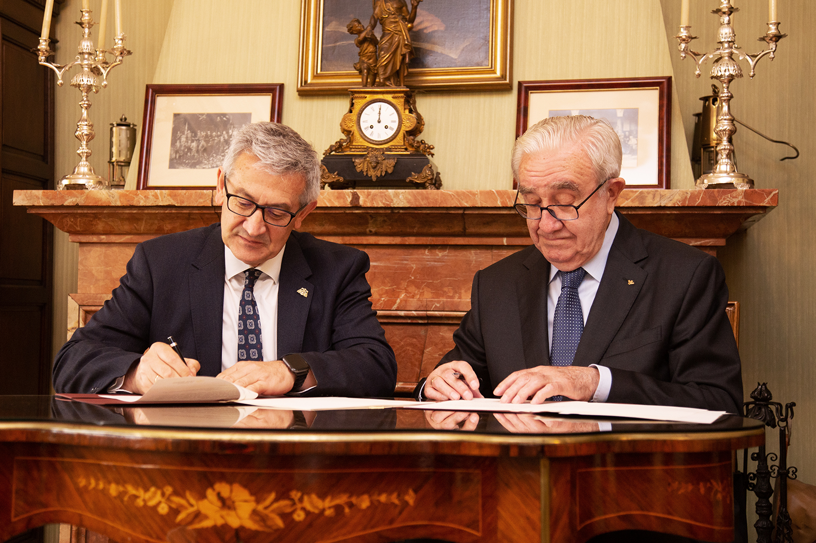El rector de la Universidad de Oviedo, Santiago García Granda, y el presidente de Caja Rural de Asturias, José María Quirós Rodríguez, han firmado esta mañana un convenio para la constitución de la Cátedra Archivo de la Tradición Oral de Asturias. La cátedra planificará y ejecutará programas, acciones y actividades de muy variada naturaleza, que estarán especialmente relacionadas con la divulgación y transferencia de conocimiento, la investigación, y la formación, adquisición y mantenimiento de fondos documentales.
