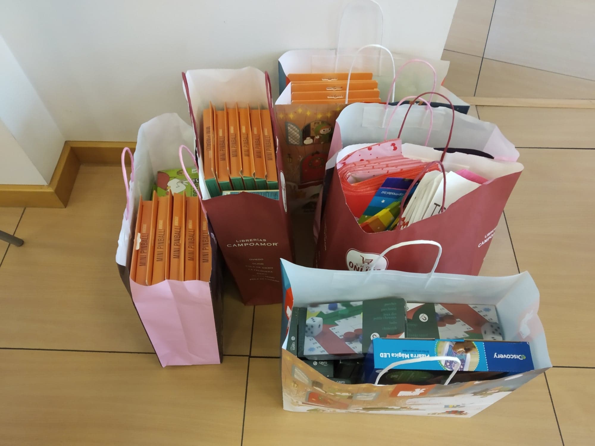Además de esto, todos los packs tienen: tijeras, pegamento, lápiz, goma, tajador, boli (para los mayores), tubo de purpurina con pegamento, colores, ceras o rotuladores (estos también en función de la edad) y libreta para que puedan crear sus propias actividades o dibujos. Todo está desinfectado uno a uno.