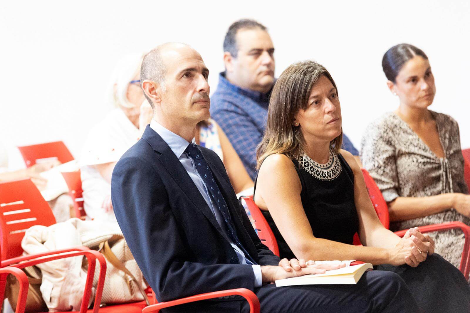 Marcelino Fernández, director de zona de Gijón, y Elena García, gestora de Banca Patrimonial, asistieron al evento, que se celebró en el Salón de actos de la Casa Rectoral de la Iglesia de San Pedro de Gijón.