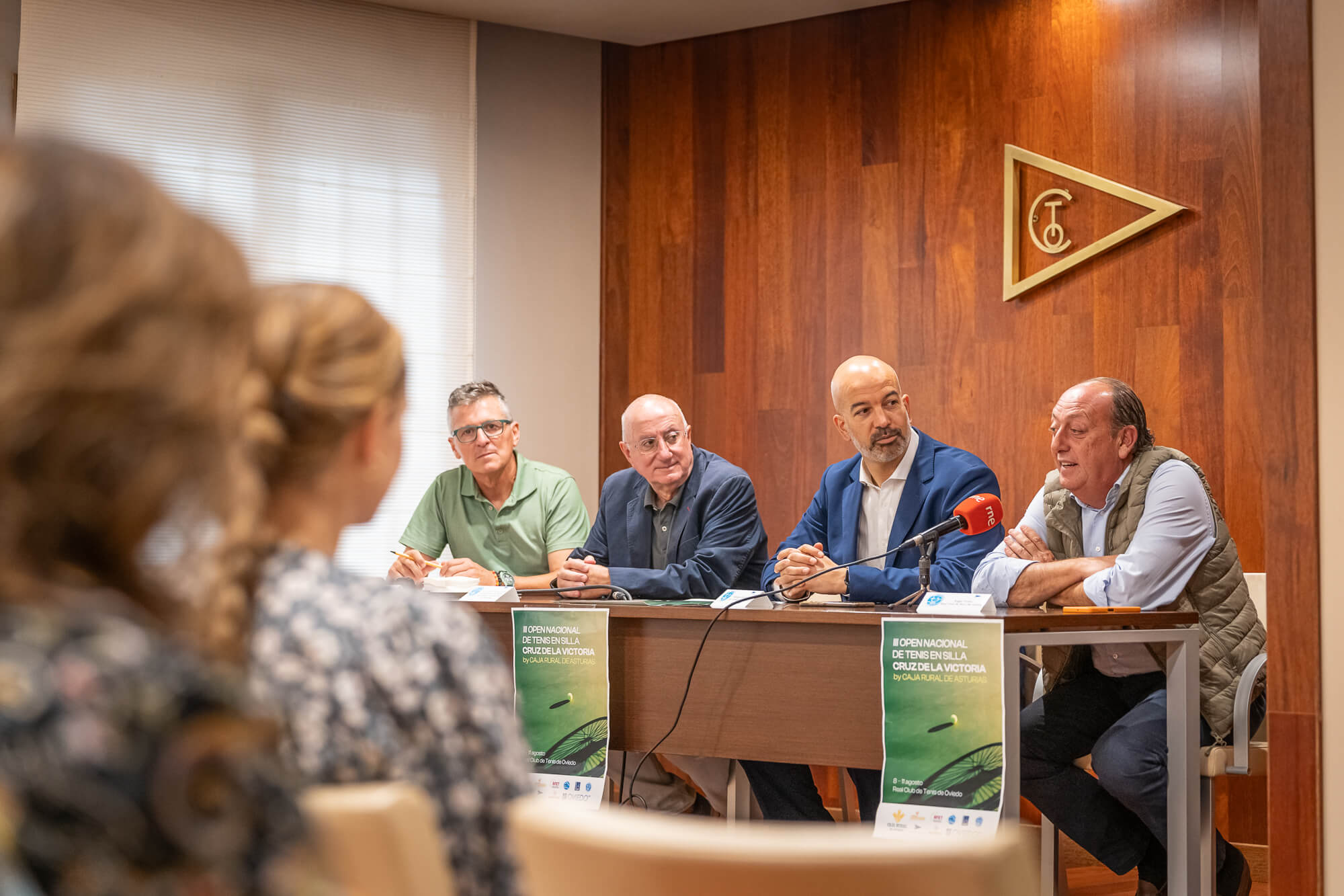 Mariano Espín, director comercial de Caja Rural de Asturias, participó en la presentación del III Open Nacional «Cruz de la Victoria de Asturias», que acogerá el Real Club de Tenis de Oviedo del 8 al 11 de agosto. Gonzalo Pérez, director del torneo; Javier Rodríguez, de la Federación de Tenis del Principado, y Ángel Prieto, de la Junta Directiva del club, también intervinieron en la mesa, en la que destacaron la calidad de los participantes y recordaron la figura de Pelayo Novo.
