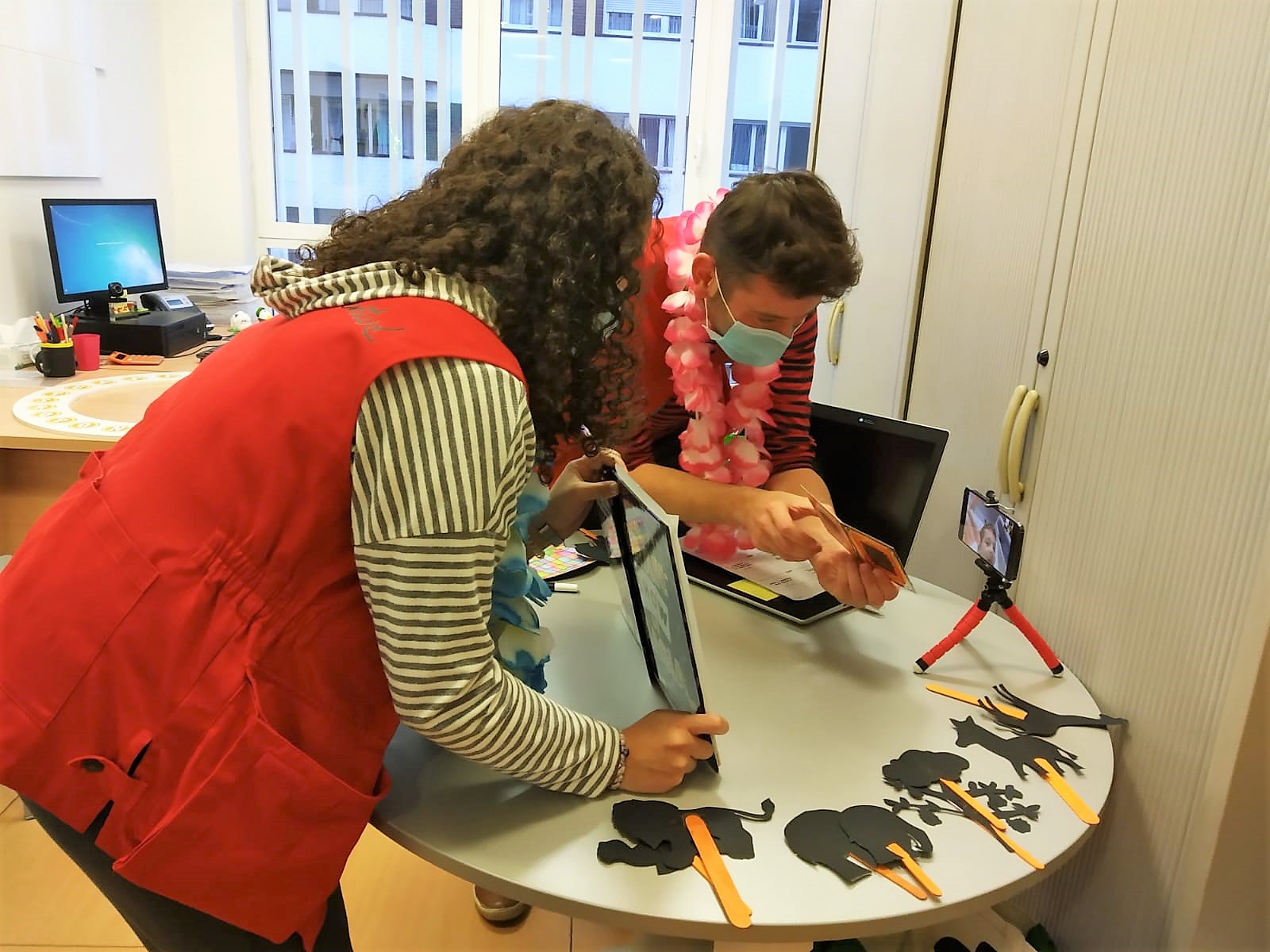 Como años anteriores, se han llevado a cabo actividades diferentes y adaptadas a cada edad, grado de desarrollo psico-evolutivo, capacidades, etc., siempre intentando que sean lo más atractivas posible para que rompan la distancia entre el voluntariado y la pantalla (pasapalabra, magia de cerca, karaoke proyectado en gran pantalla, cuentacuentos son sombras chinas, con láminas de Kamishibai…). También se han celebrado fiestas como la de carnaval, viajes virtuales a través de las videollamadas (adaptando el escenario de fondo a cada lugar) y se han conmemorado días internacionales a través de acciones de sensibilización (Día del niño hospitalizado, Día de los derechos del niño, Día del libro…).